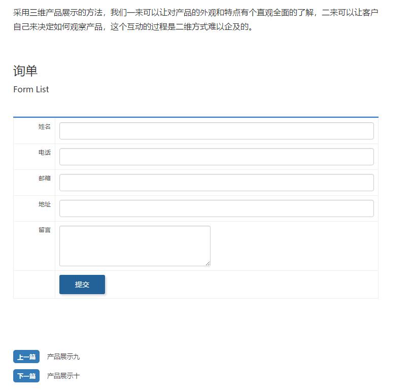 设置绑定表单后,该栏目下的内容页中,会出现表单提交显示,如图: