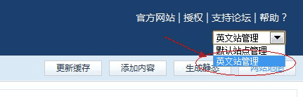当设置好站点列表中,其他站点后,在后台的右侧上方,网站列表下来框中会显示其他站的名称,您可以直接点击下来框中的网站,进行网站后台登录切换。