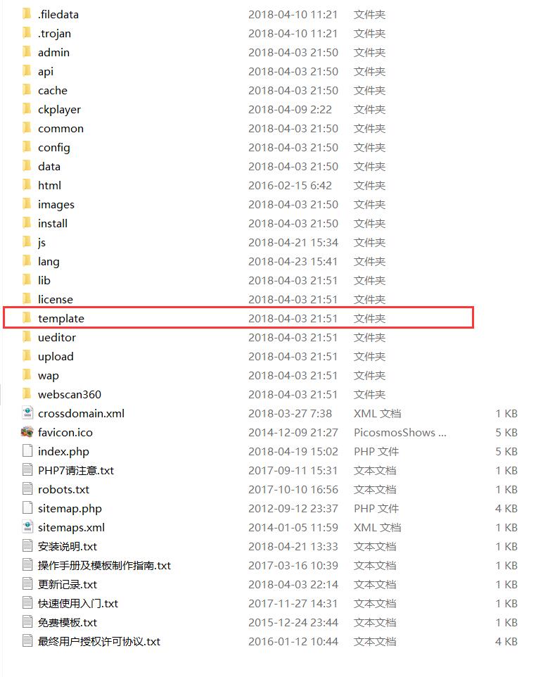 注意:请勿直接修改或删除 模板文件夹里面的文件,程序升级有可能需要覆盖。