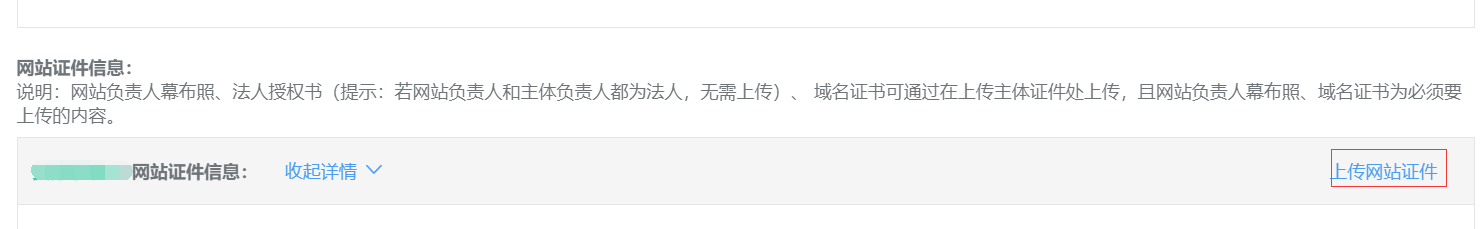 5、幕布照拍好后请进入“查看备案信息”页面,点击“上传网站证件”---上传幕布照片