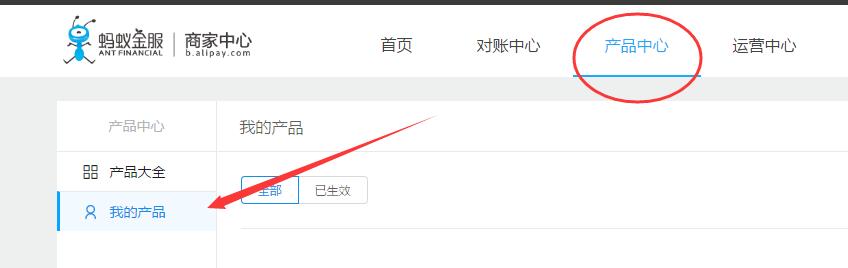 注意:接口类型选择错误 会导致网站在线支付失败! 网站管理员可在 https://b.alipay.com 产品中心 -我的产品 中查看签约类型。