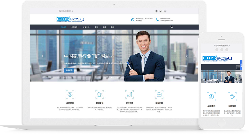 响应式网站模板无需设置其他终端,直接调用后台内容,使用简单方便。